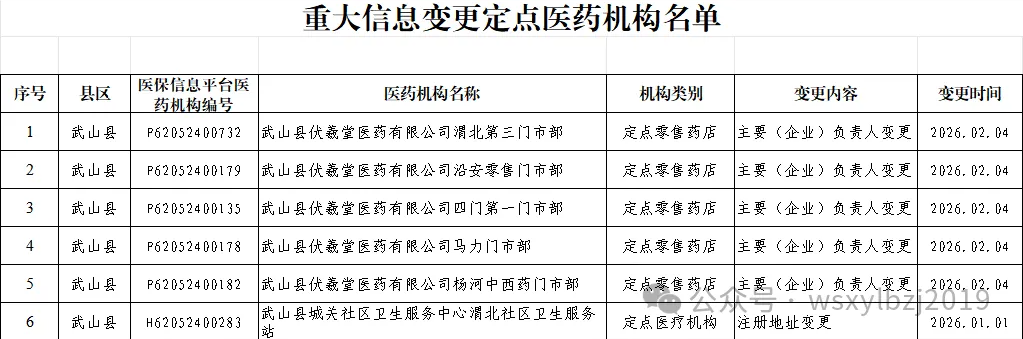 【天水】关于2026年第二批县内定点医药机构重大信息变更的公告
