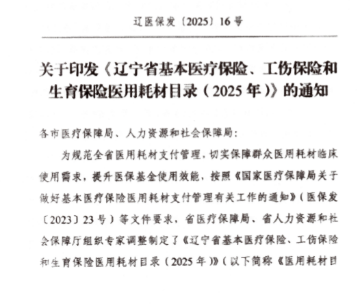 【大连】转发辽宁省医疗保障局 辽宁省人力资源和社会保障厅关于印发《辽宁省基本医疗保险、工伤保险和生育保险医用耗材目录(2025年)》的通知