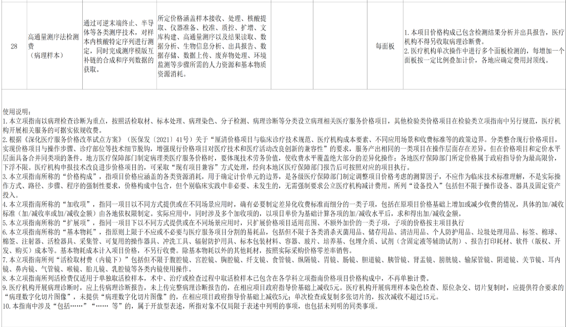 【福建】《病理类医疗服务价格项目立项指南(试行)》