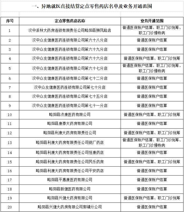 【汉中】略阳县异地就医直接结算定点医药机构名单