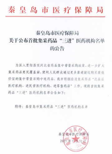 【秦皇岛】秦皇岛市医疗保障局关于公布首批集采药品“三进”医药机构名单的公告