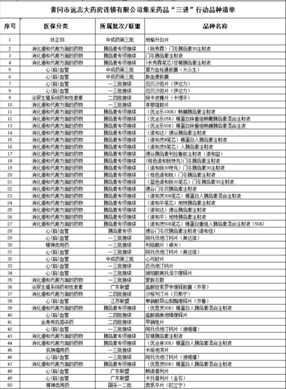 集采药品“三进”行动,即集采药品进基层医疗机构、进定点零售药店、进民营医疗机构。集采药品“三进”行动单位,应加强药品品种管理。从黄冈市集采药品“三进”行动品种清单的367个品种中,遴选出适合品种(具体见附件2),严格落实药品信息化追溯规定,确保集采药品来源明确、去向可查。严格执行“五统一”管理,让集采药品“好认”“好懂”更“好选”。