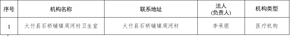 根据达州市医疗保障局《关于规范我市医药机构医疗保障定点管理的通知》(达市医保办发〔2021〕52号)精神,为进一步加强和规范我市医药机构医疗保障定点管理,我中心对大竹县石桥铺镇周河村卫生室拟纳入医保定点协议管理的医疗机构名单,予以公示。