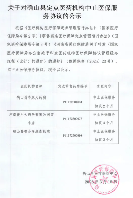 【驻马店】关于对确山县定点医药机构中止医保服务协议的公示