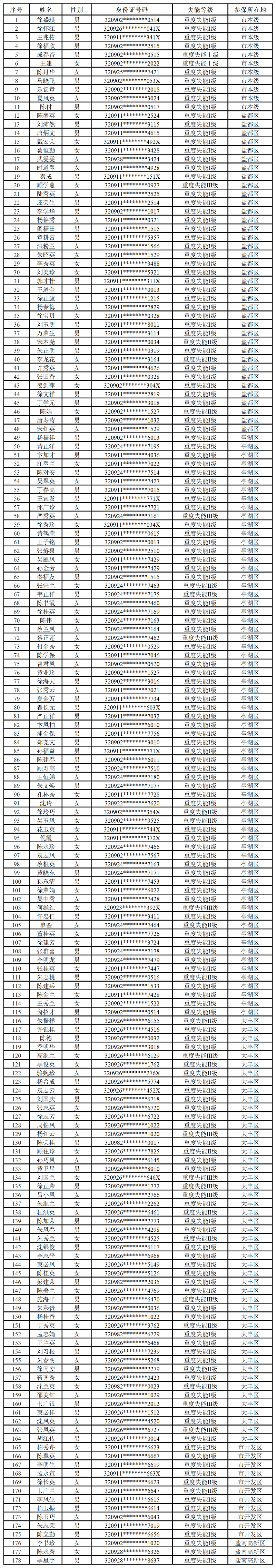 根据《盐城市照护保险失能评估管理办法》规定,经综合评估,拟确定以下178名参保人员符合盐城市照护保险重度失能等级标准,现予以公示。公示期限为5个工作日。