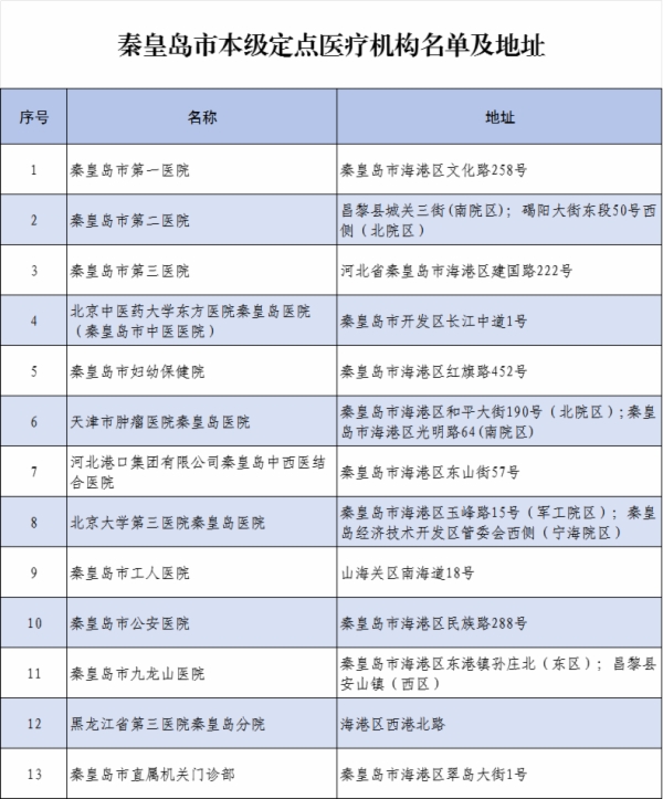 【秦皇岛】秦皇岛市医疗保险基金管理中心 关于公布市本级定点医疗机构信息的通告