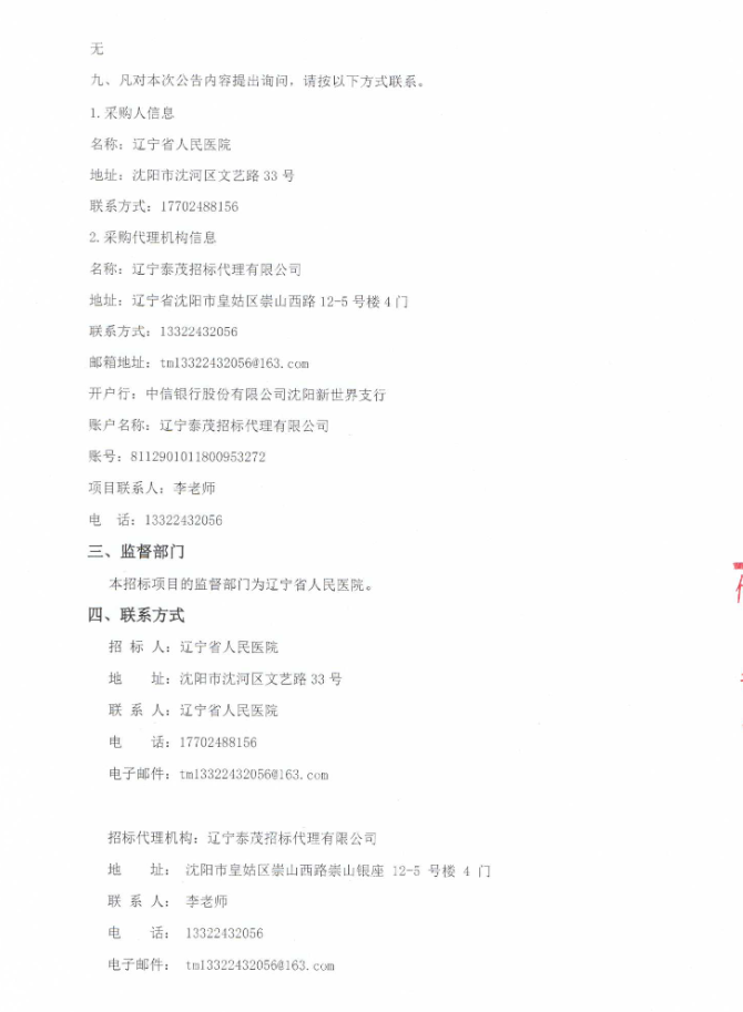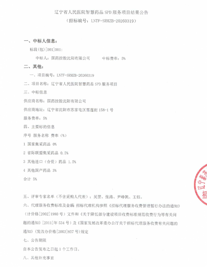 辽宁省人民医院智慧药品SPD服务项目结果公告