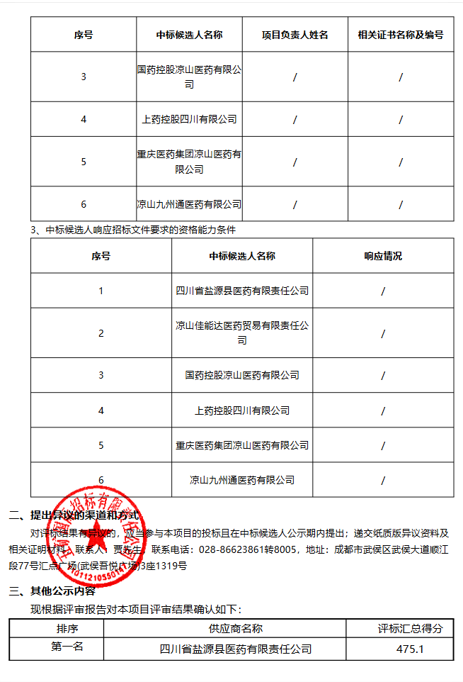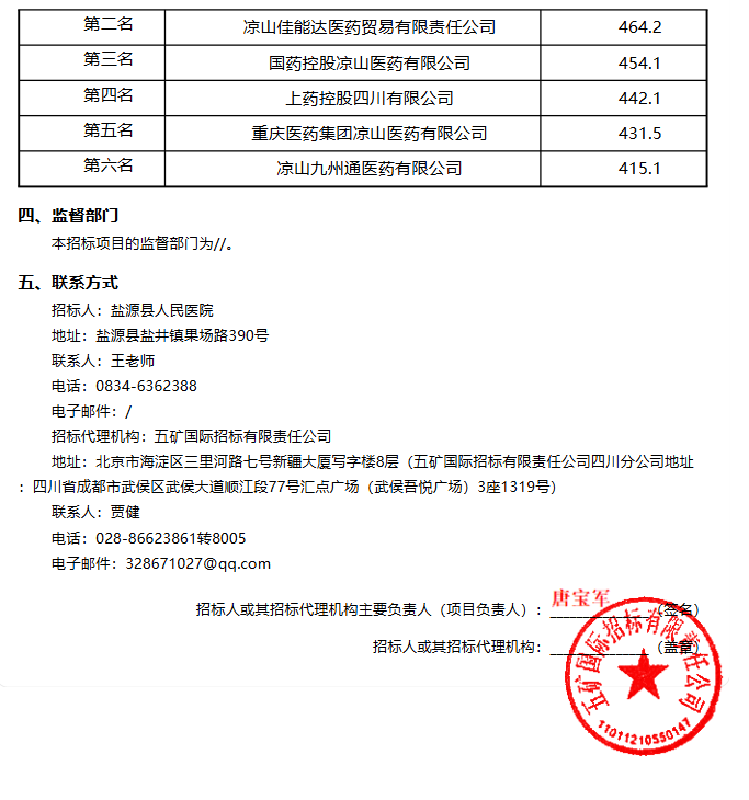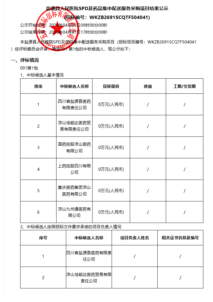 四川省盐源县人民医院SPD及药品集中配送服务采购项目结果公示