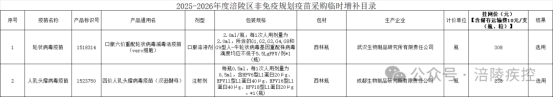 附件:2025-2026年度涪陵区非免疫规划疫苗采购临时增补目录