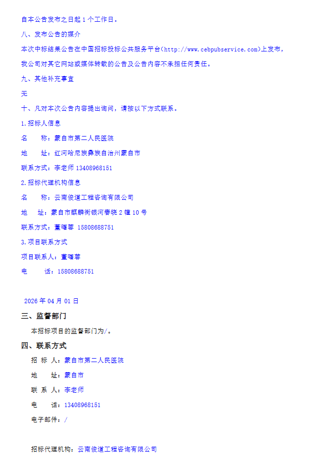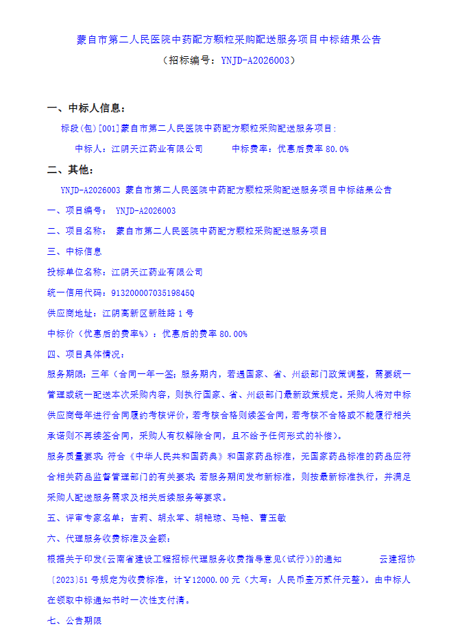 云南省蒙自市第二人民医院中药配方颗粒采购配送服务项目中标结果公告