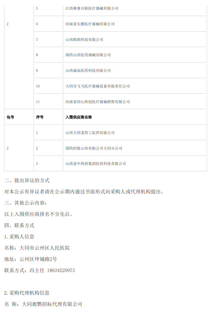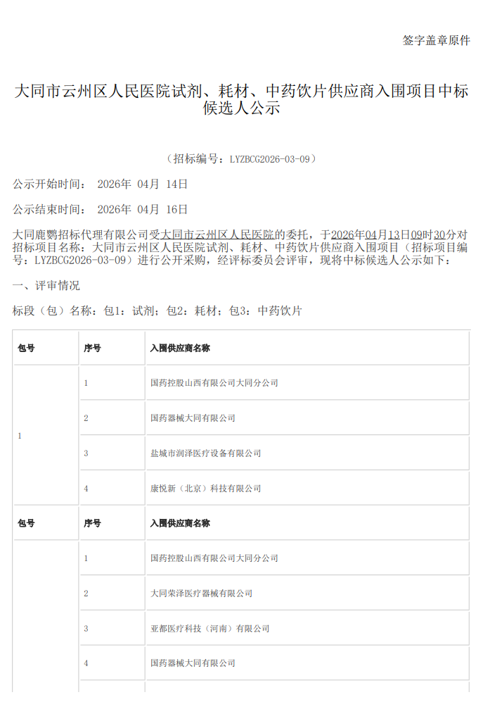 山西省大同市大同市云州区人民医院试剂、耗材、中药饮片供应商入围项目中标候选人公示