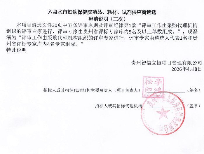 贵州省六盘水市妇幼保健院药品、耗材、试剂供应商遴选澄清说明(三次)