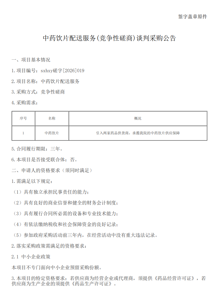 山西省晋中市妇幼保健院药饮片配送服务(竞争性磋商)谈判采购公告