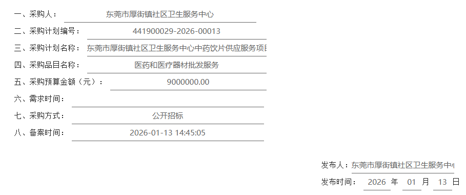 广东省东莞市厚街镇社区卫生服务中心中药饮片供应服务项目