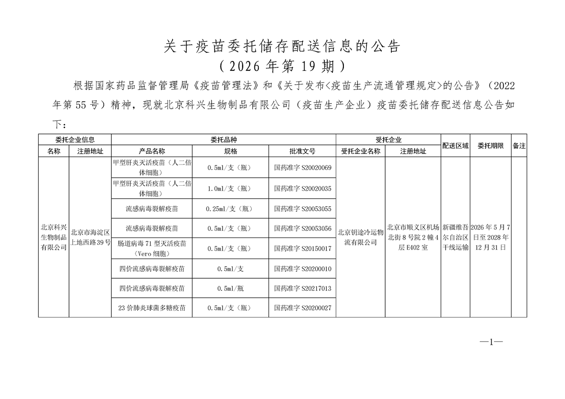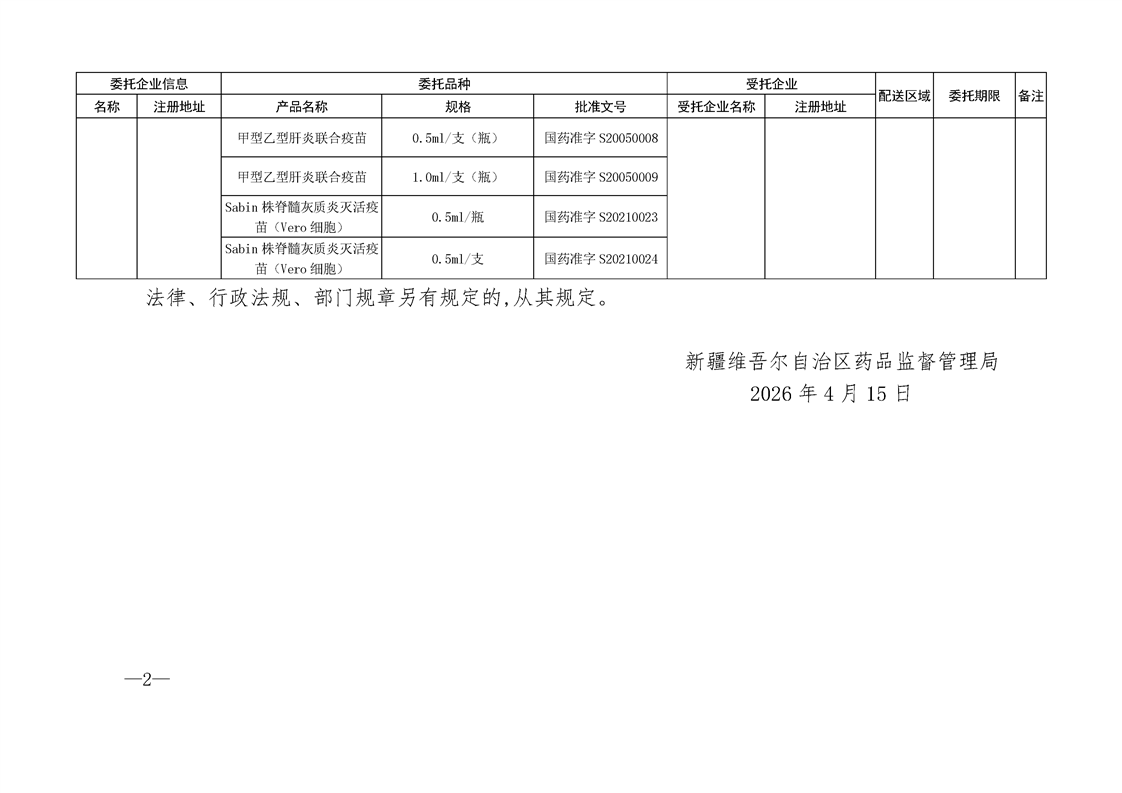 【新疆】关于疫苗委托储存配送信息的公告(2026年第19期)
