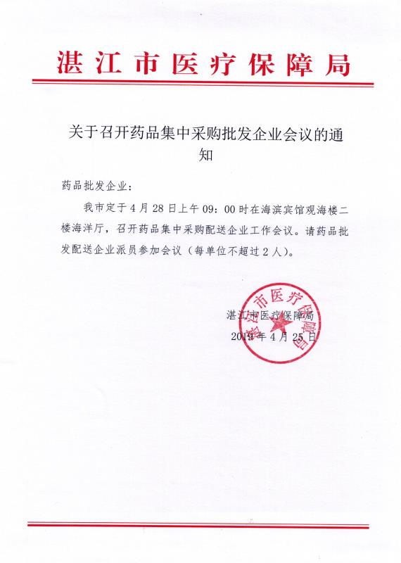 【湛江】全药网关于转发湛江市医疗保障局《关于召开药品集中采购批发企业会议的通知》的通知