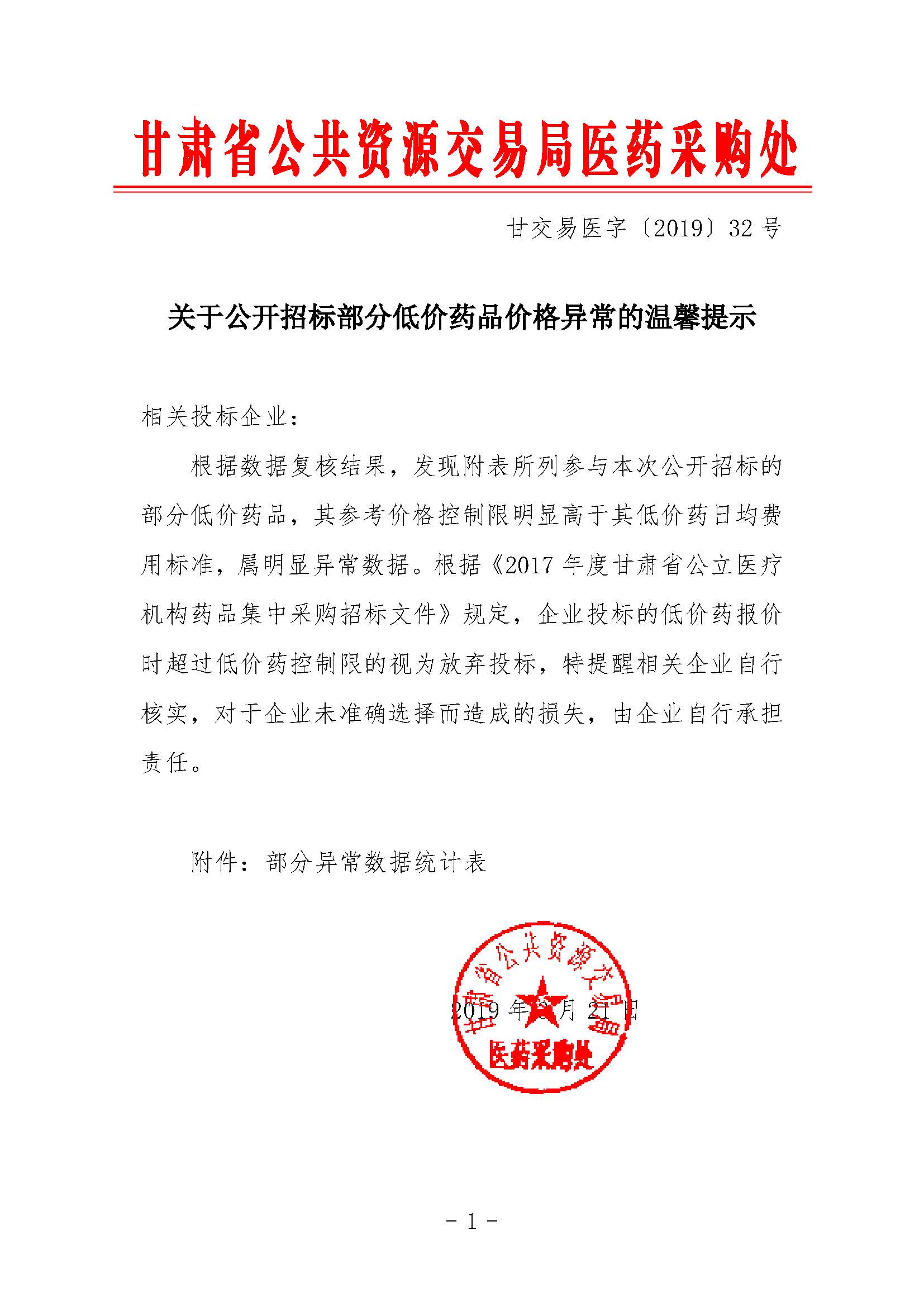 【甘肃】甘肃省关于公开招标部分低价药品价格异常的温馨提示