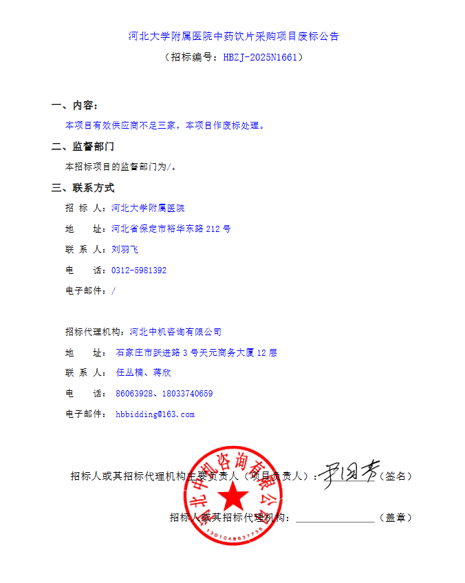 【河北大学附属医院】河北大学附属医院中药饮片采购项目废标公告
