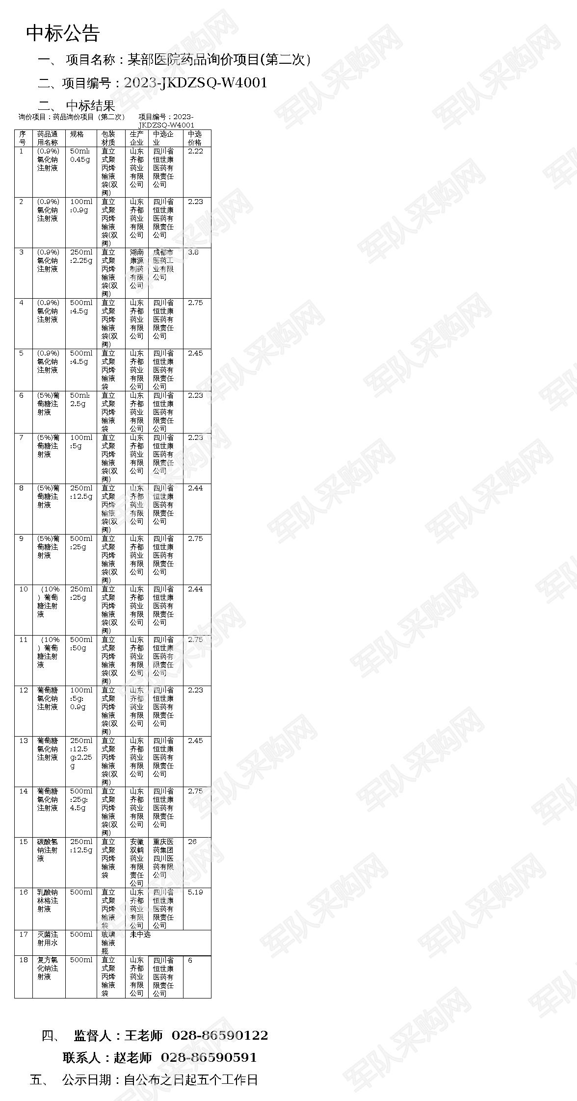 【军队采购】军队采购网某部医院药品询价项目(第二次)2023-JKDZSQ-W4001