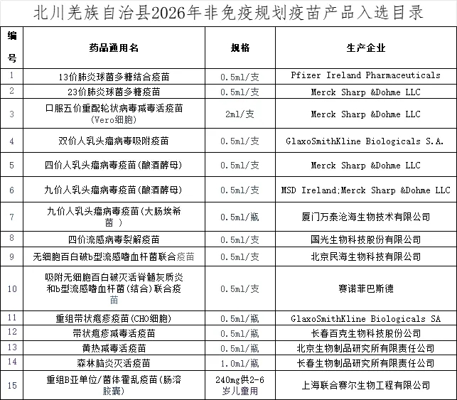 【绵阳】北川羌族自治县2026年非免疫规划疫苗遴选结果的公示