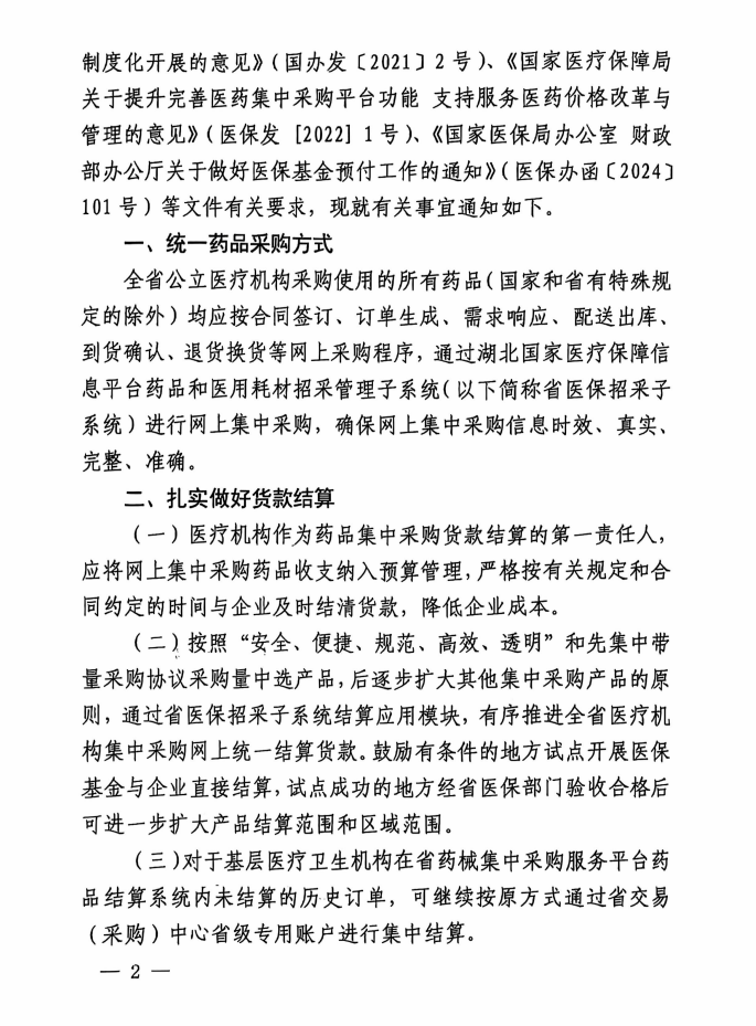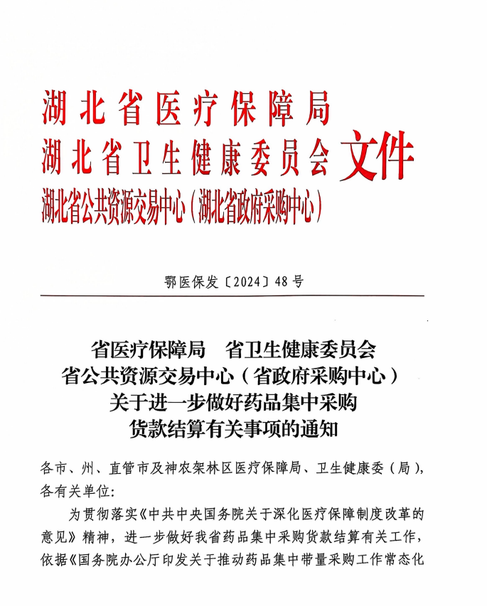 【湖北】关于进一步做好药品集中采购货款结算有关事项的通知