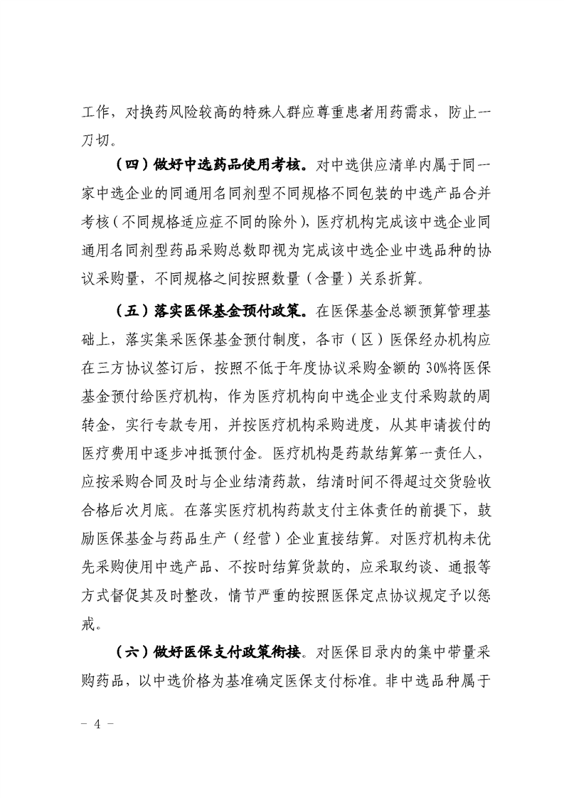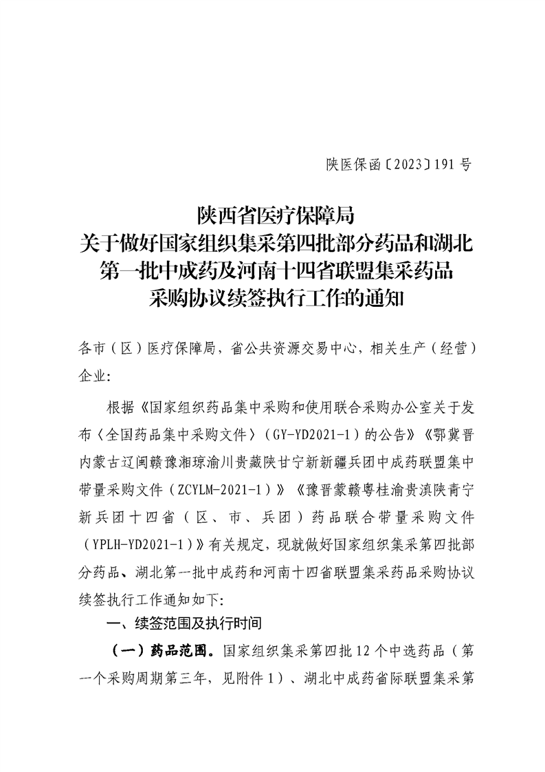 【陕西】陕西省医疗保障局关于做好国家组织集采第四批部分药品和湖北第一批中成药及河南十四省联盟集采药品采购协议续签执行工作的通知