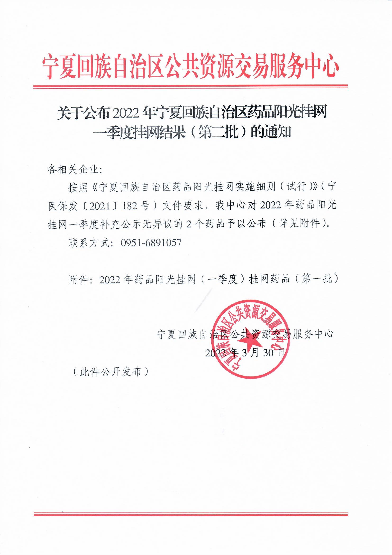 【宁夏】关于公布2022年宁夏回族自治区药品阳光挂网一季度挂网结果(第二批)的通知