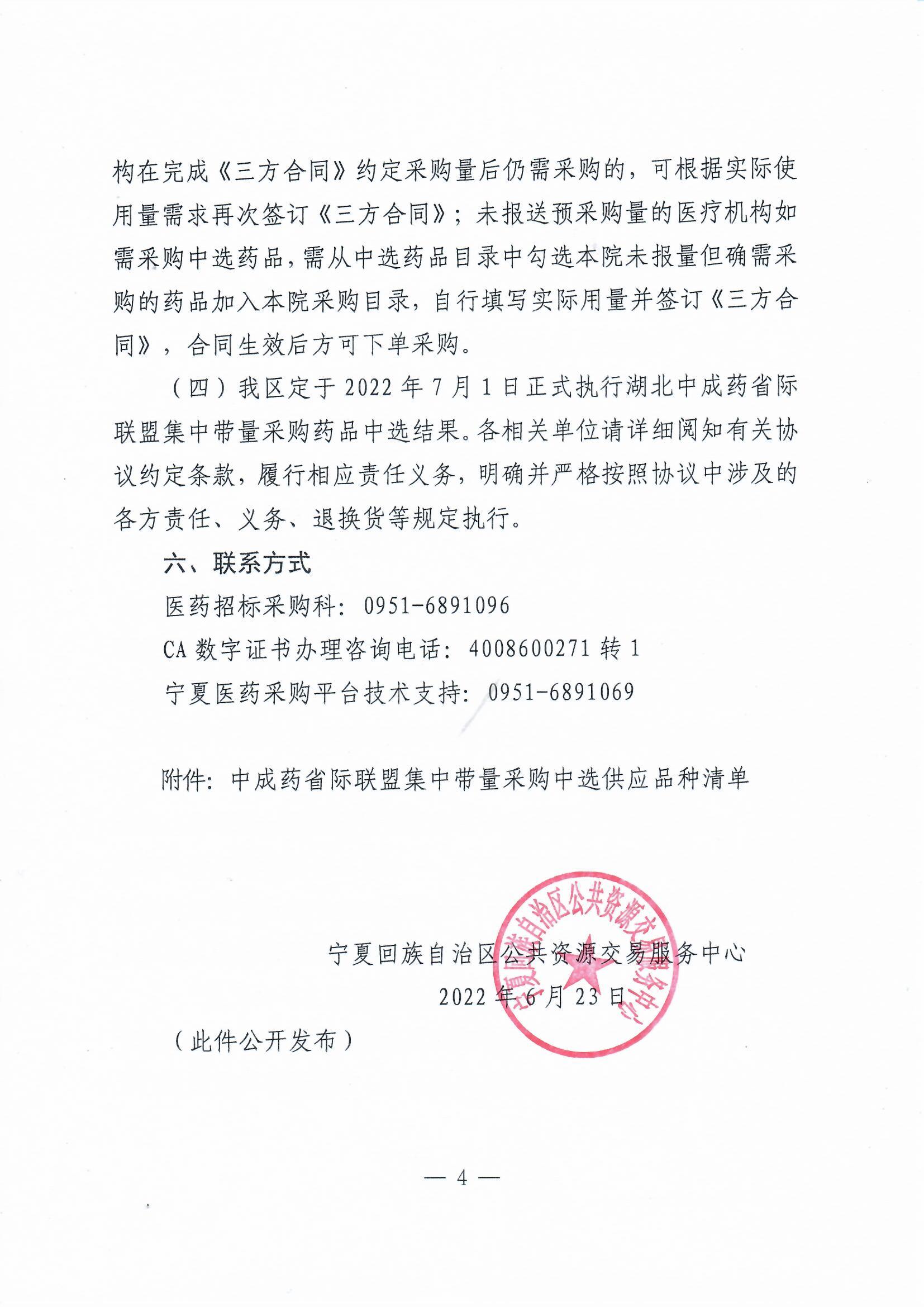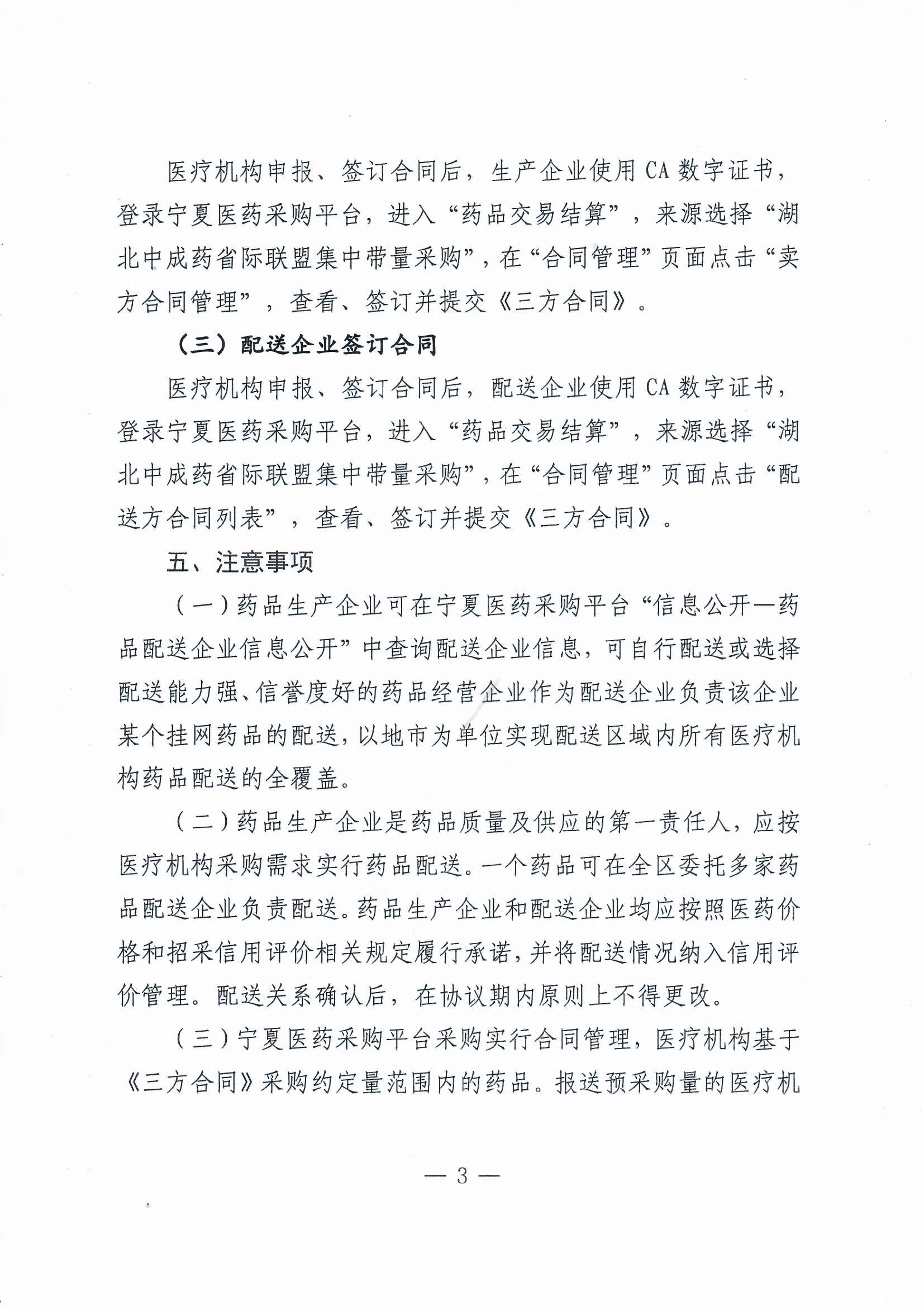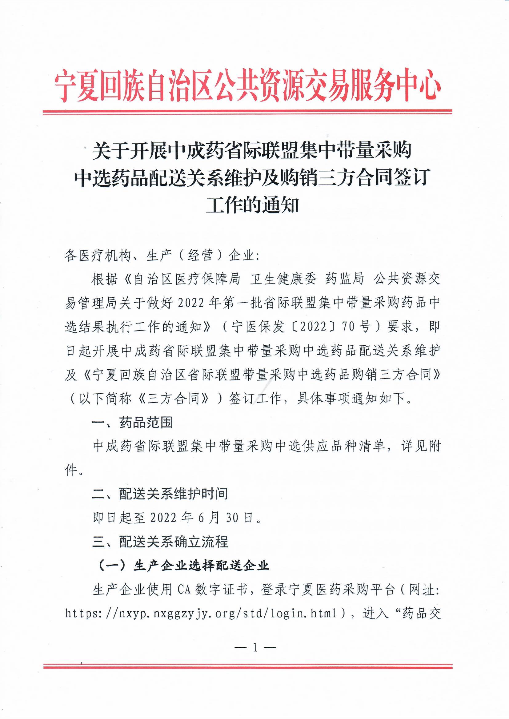 【宁夏】宁夏回族自治区关于开展中成药省际联盟集中带量采购中选药品配送关系维护及购销三方合同签订工作的通知