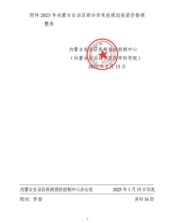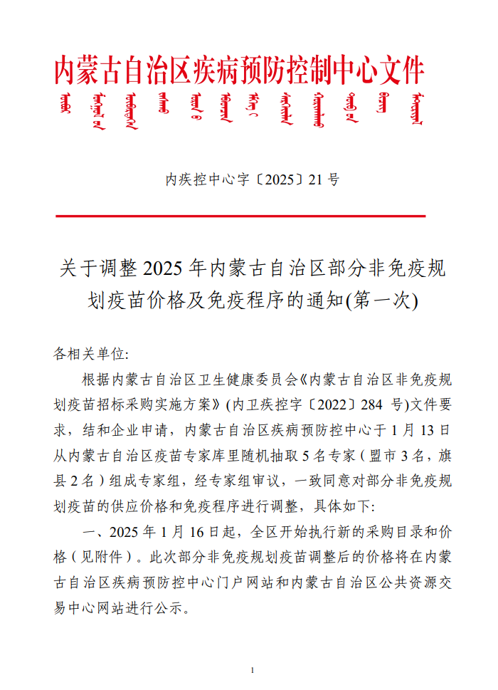 【内蒙】关于调整2025年内蒙古自治区部分非免疫规划疫苗价格及免疫程序的通知(第一次)