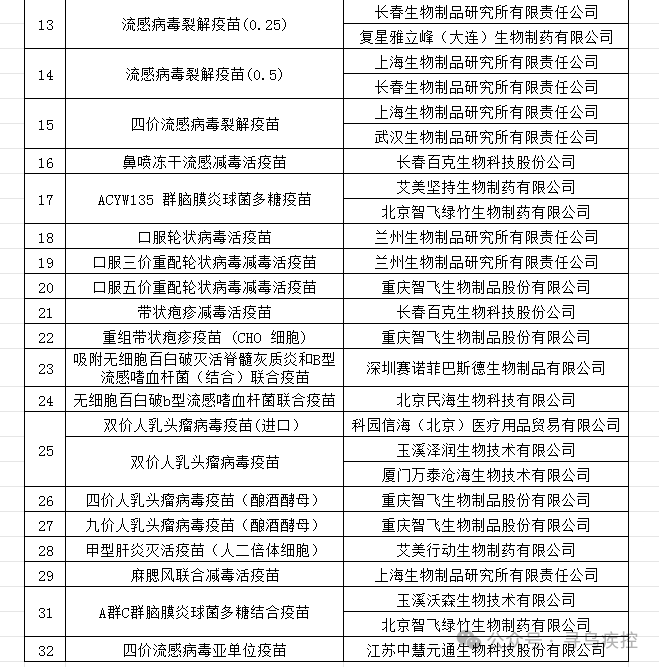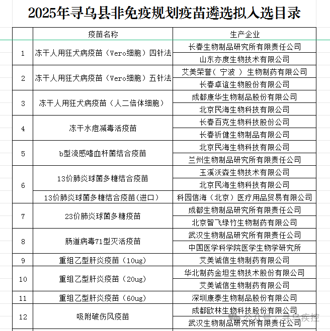 寻乌县2025年非免疫规划疫苗遴选公告中32个遴选疫苗品种。