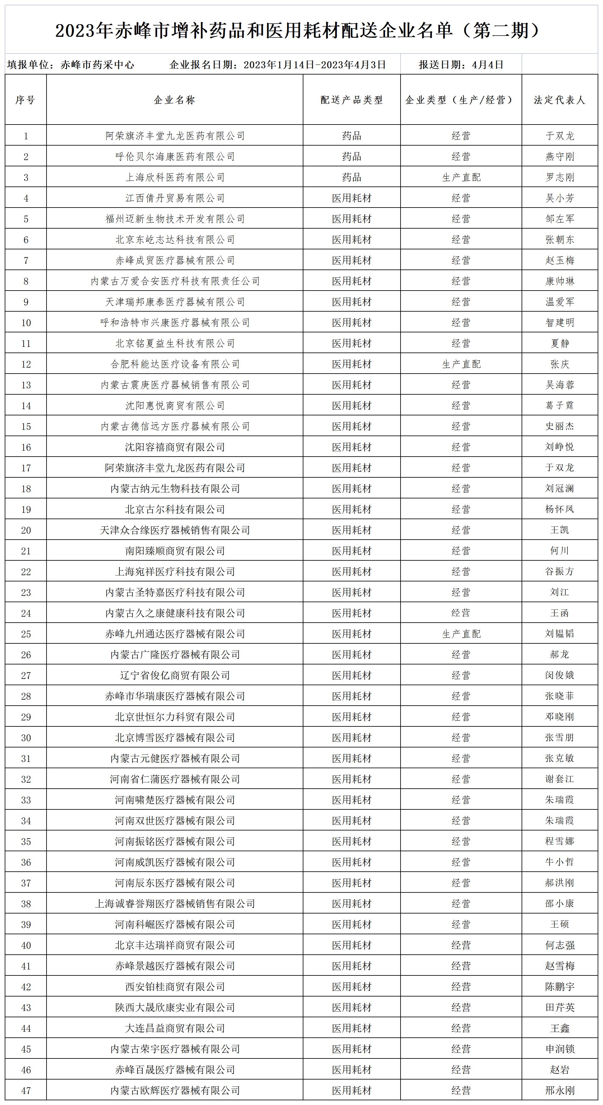【赤峰】2023年赤峰市增补药品和医用耗材配送企业名单(第二期)