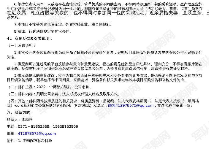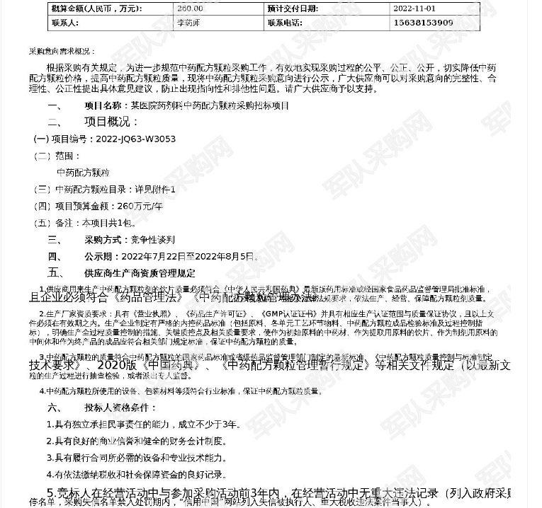 【军队采购】某医院药剂科中药配方颗粒采购招标2022-JQ63-W3053