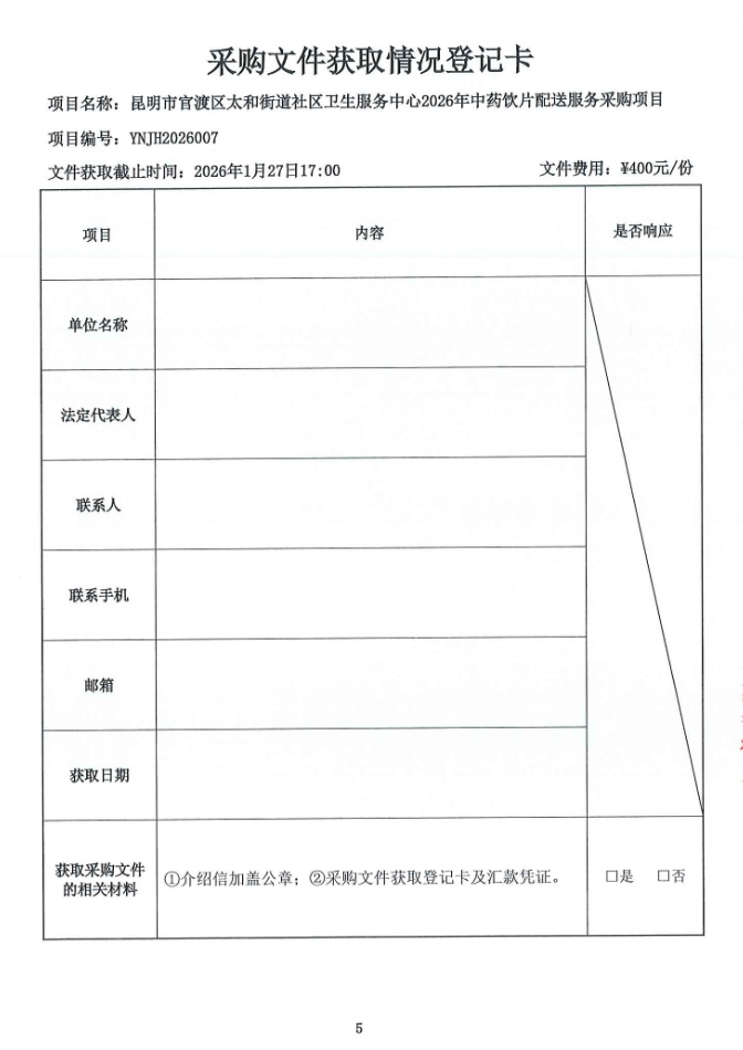 【昆明市官渡区太和街道社区卫生服务中心】云南省昆明市官渡区太和街道社区卫生服务中心2026年中药饮片配送服务采购项目招标公告