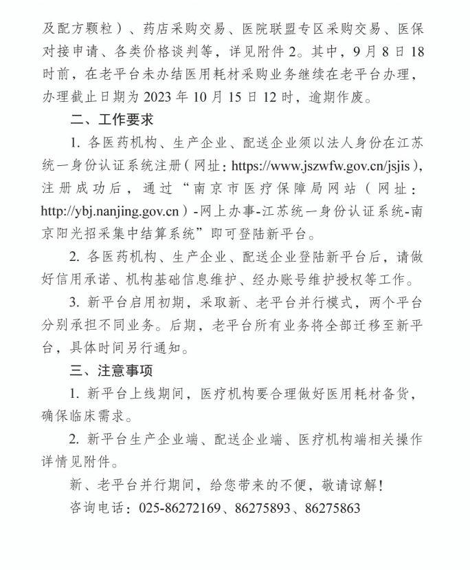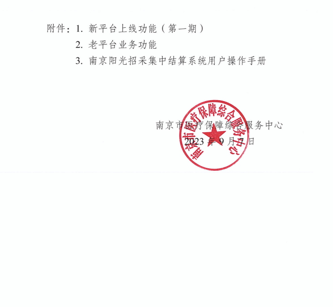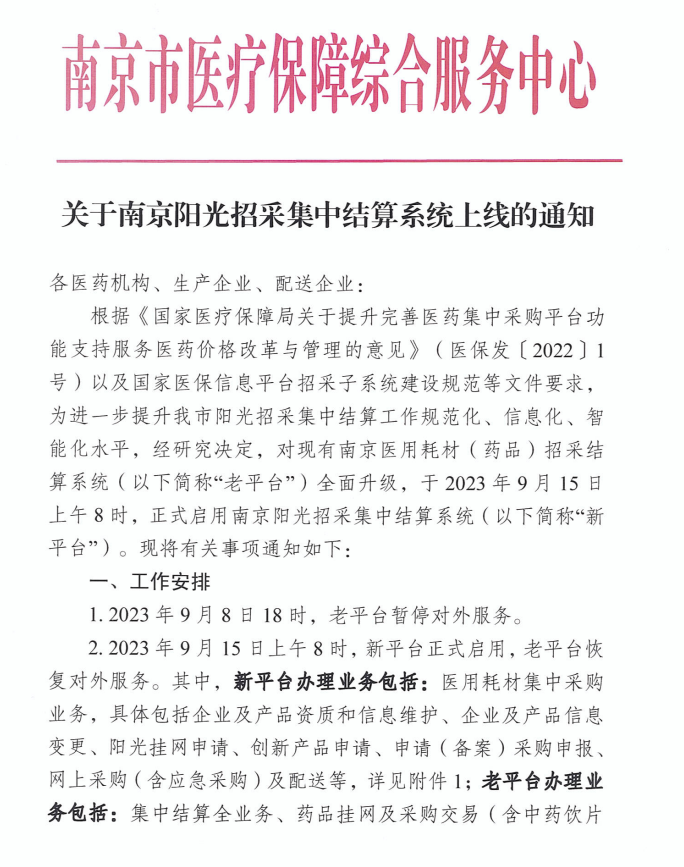 【南京】关于南京阳光招采集中结算系统上线的通知