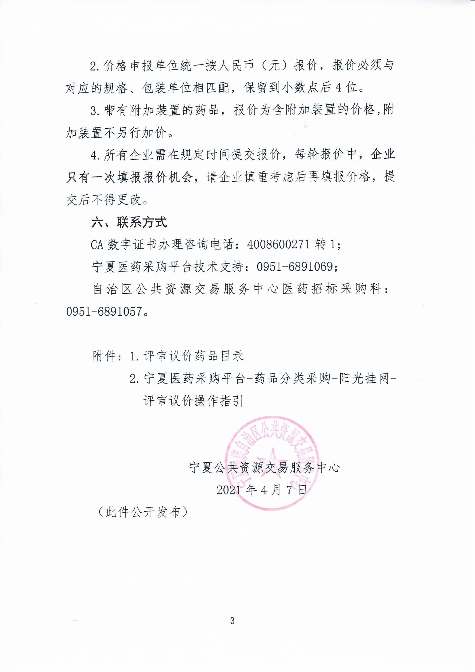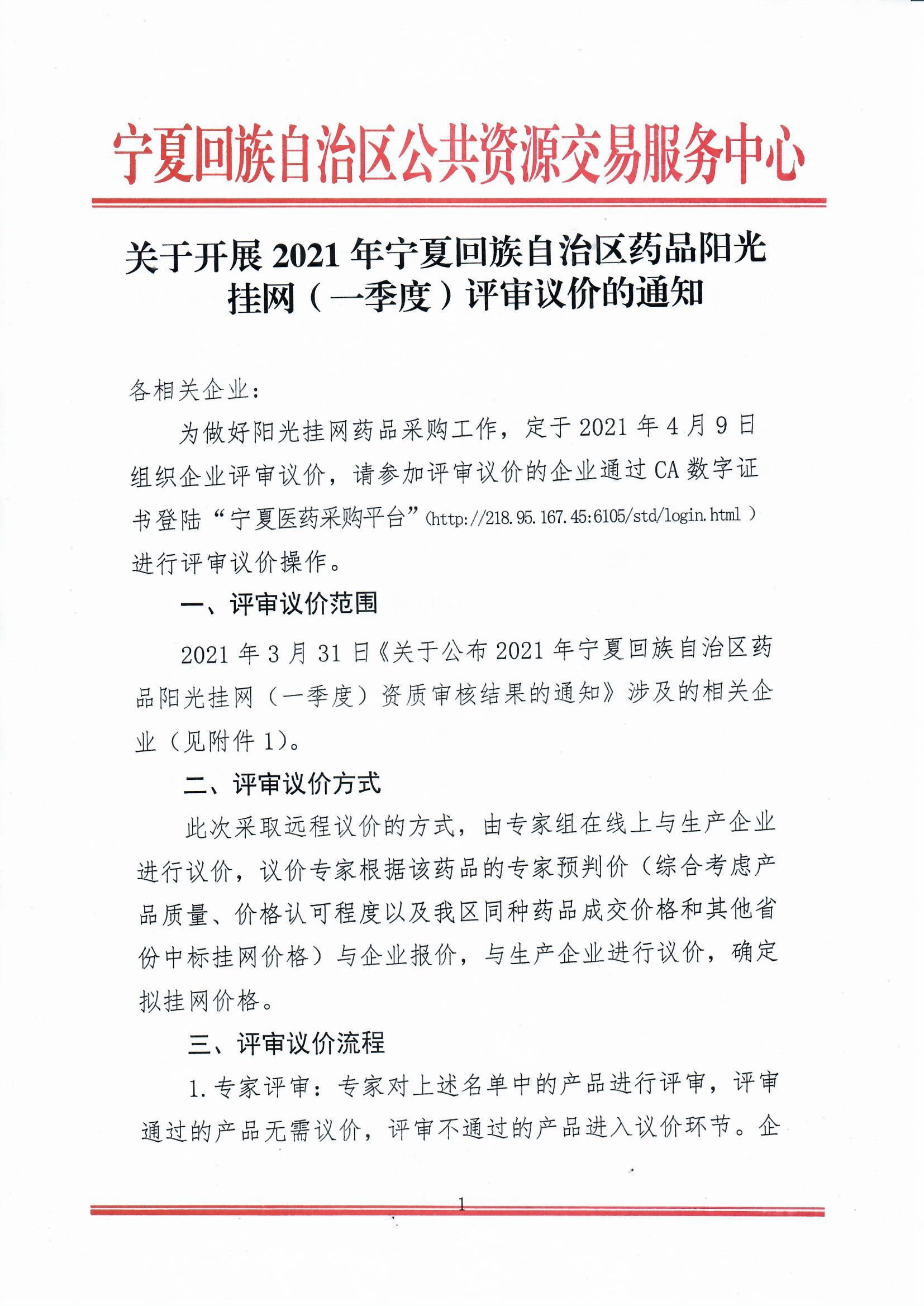 【宁夏】2021年宁夏自治区关于开展2021年宁夏回族自治区药品阳光挂网(一季度)评审议价的通知