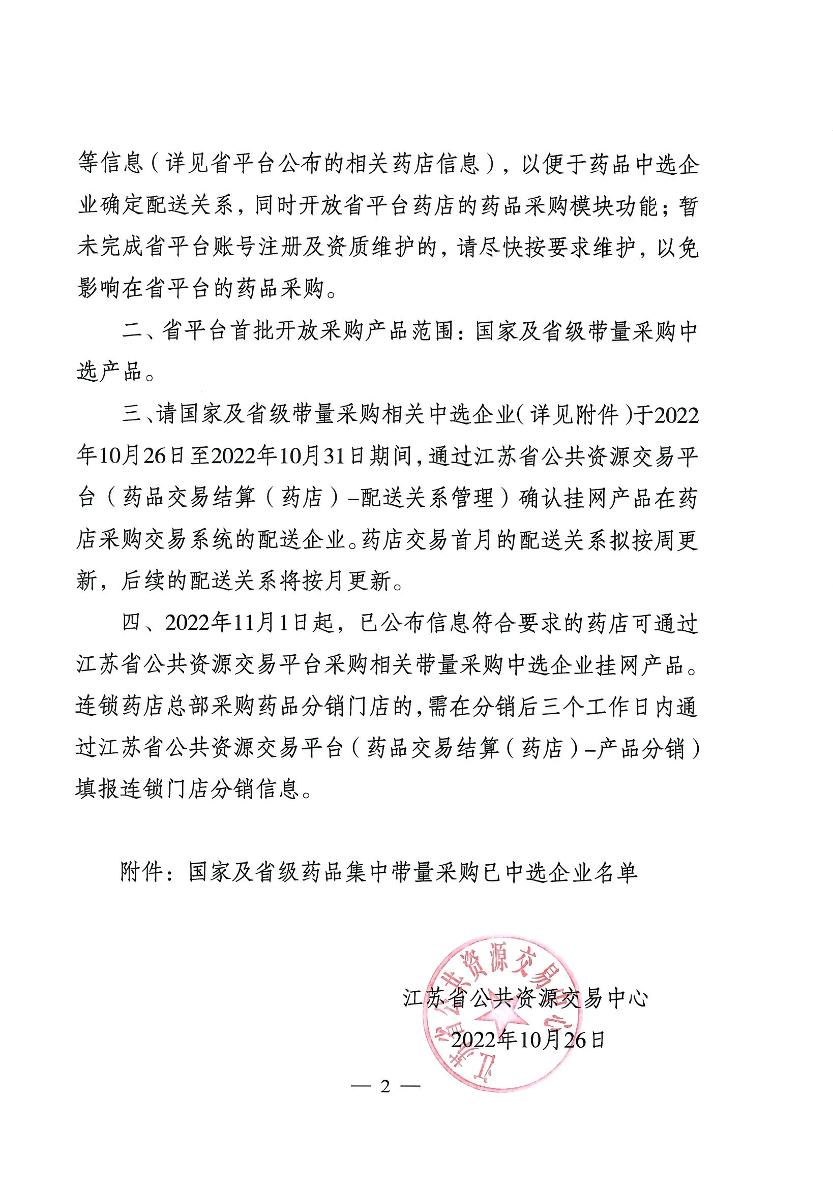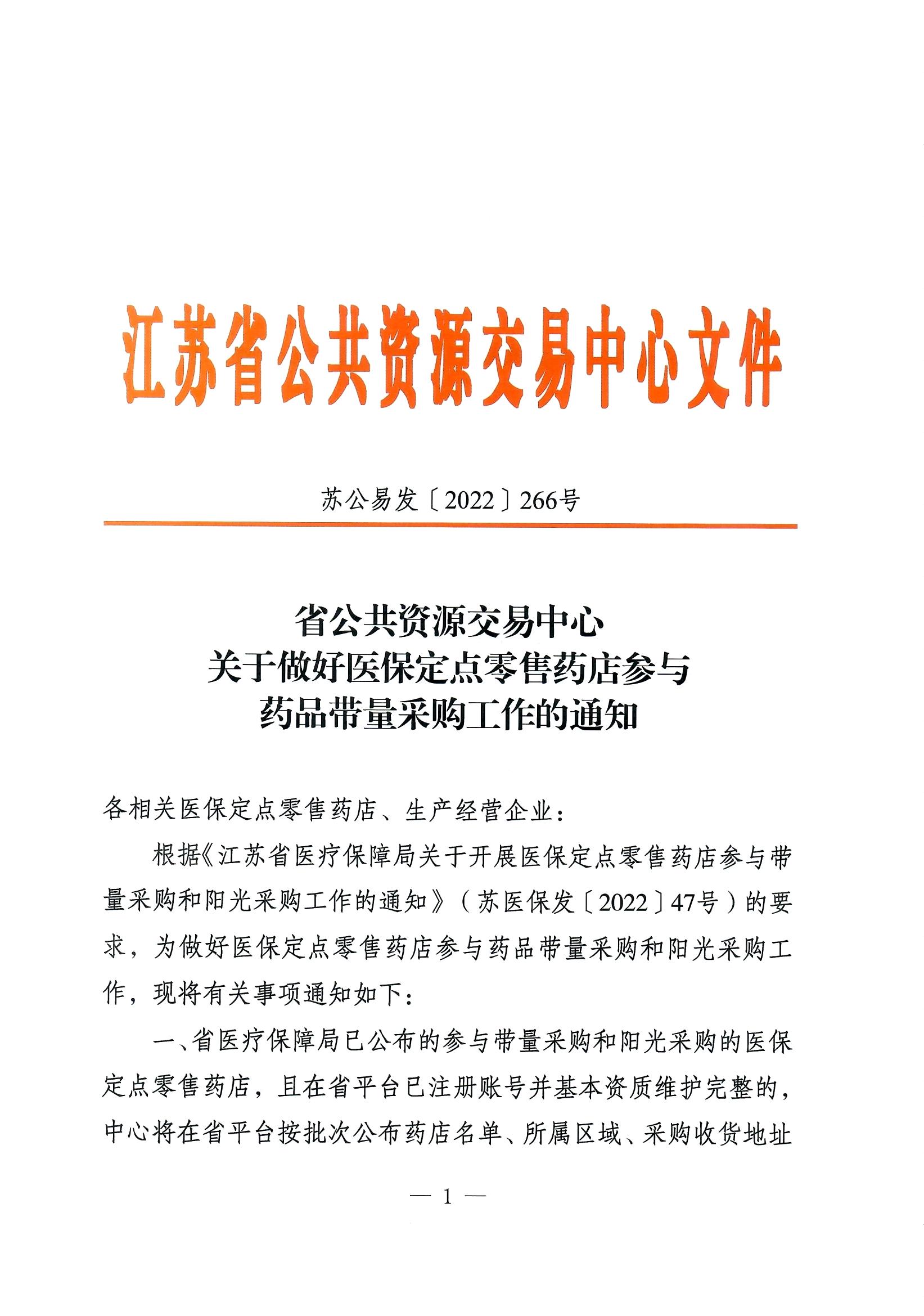 【江苏】省公共资源交易中心关于做好医保定点零售药店参与药品带量采购工作的通知
