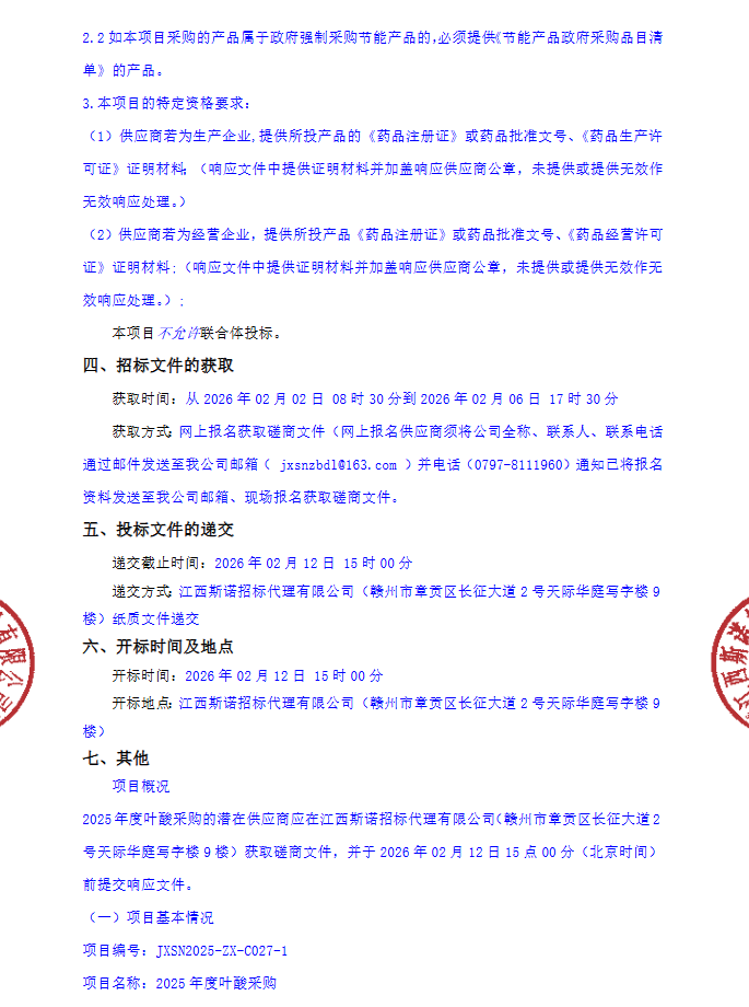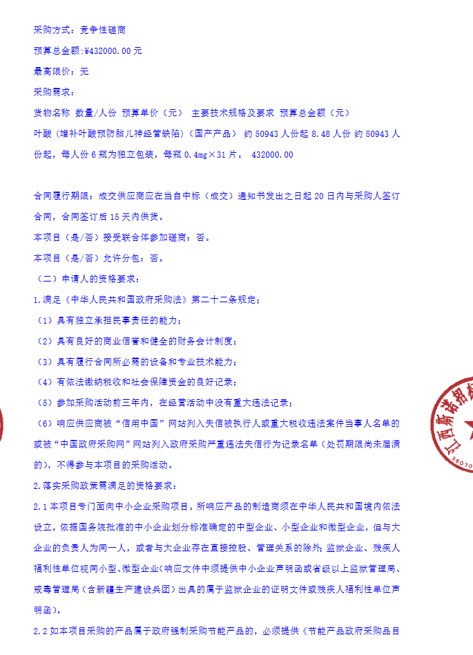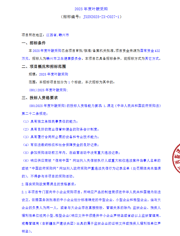 【赣州市卫生健康委员会】江西省赣州市卫生健康委员会2025年度叶酸采购