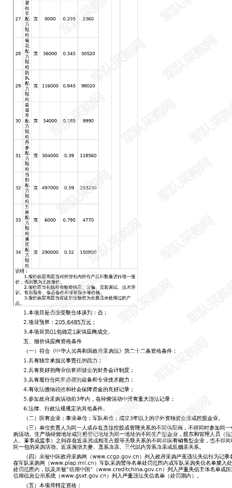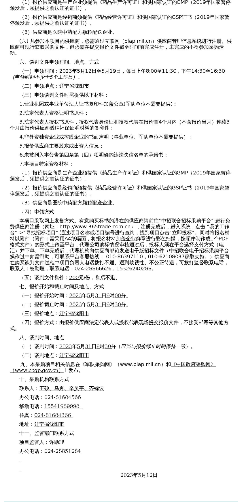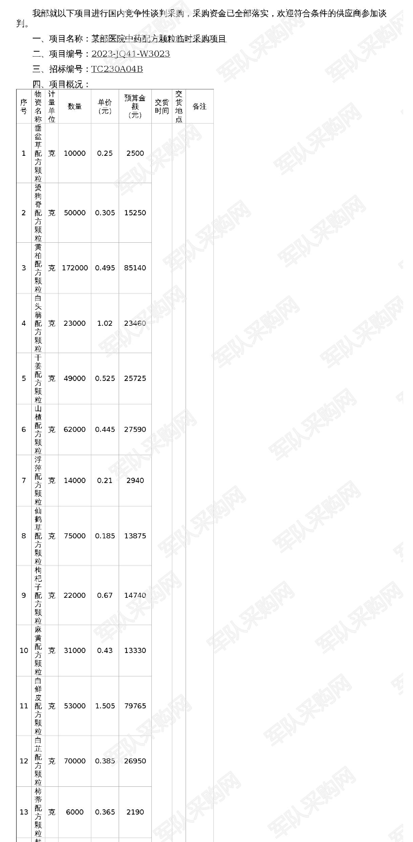 【军队采购】军队采购网某部医院中药配方颗粒临时采购项目竞争性谈判公告(2023-JQ41-W3023)