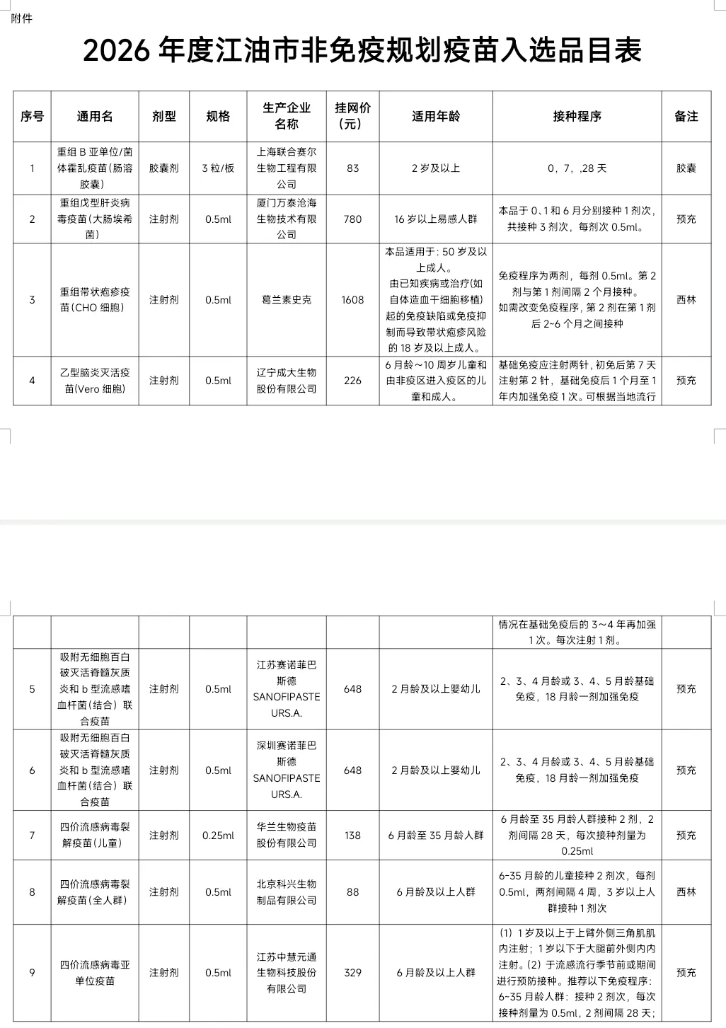 【绵阳】2026年度江油市非免疫规划疫苗遴选结果公示