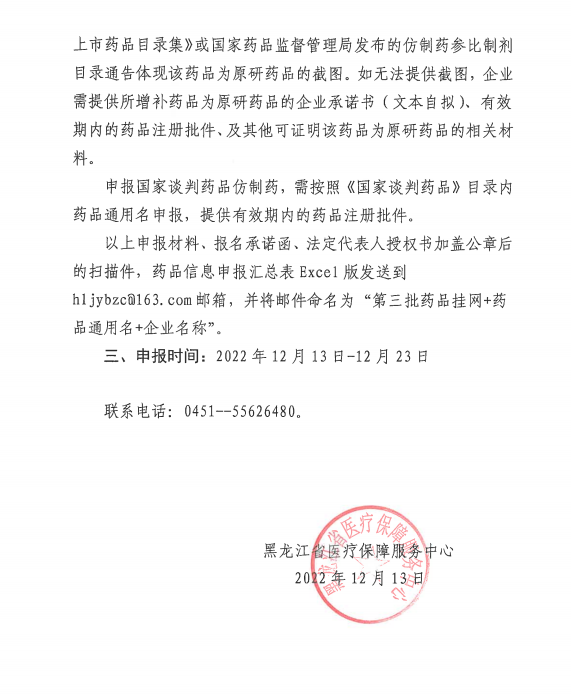 hljybzc@163.com邮箱,并将邮件命名为"第三批药品挂网+药品通用名+企业名称"。