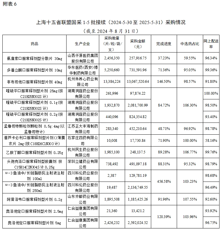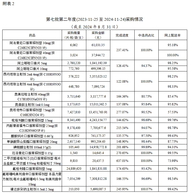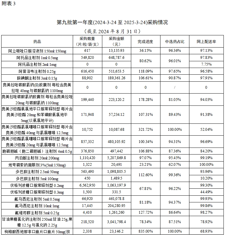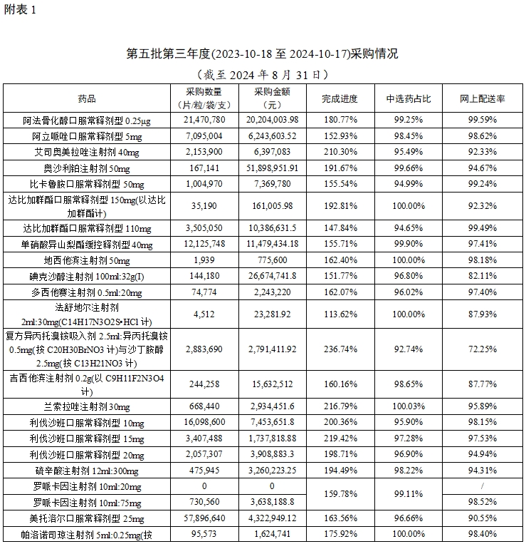 截至2024年8月31日,江西执行国家药品带量采购、我省牵头药品联盟带量采购中选结果网上采购使用平稳有序。现将情况通报如下。