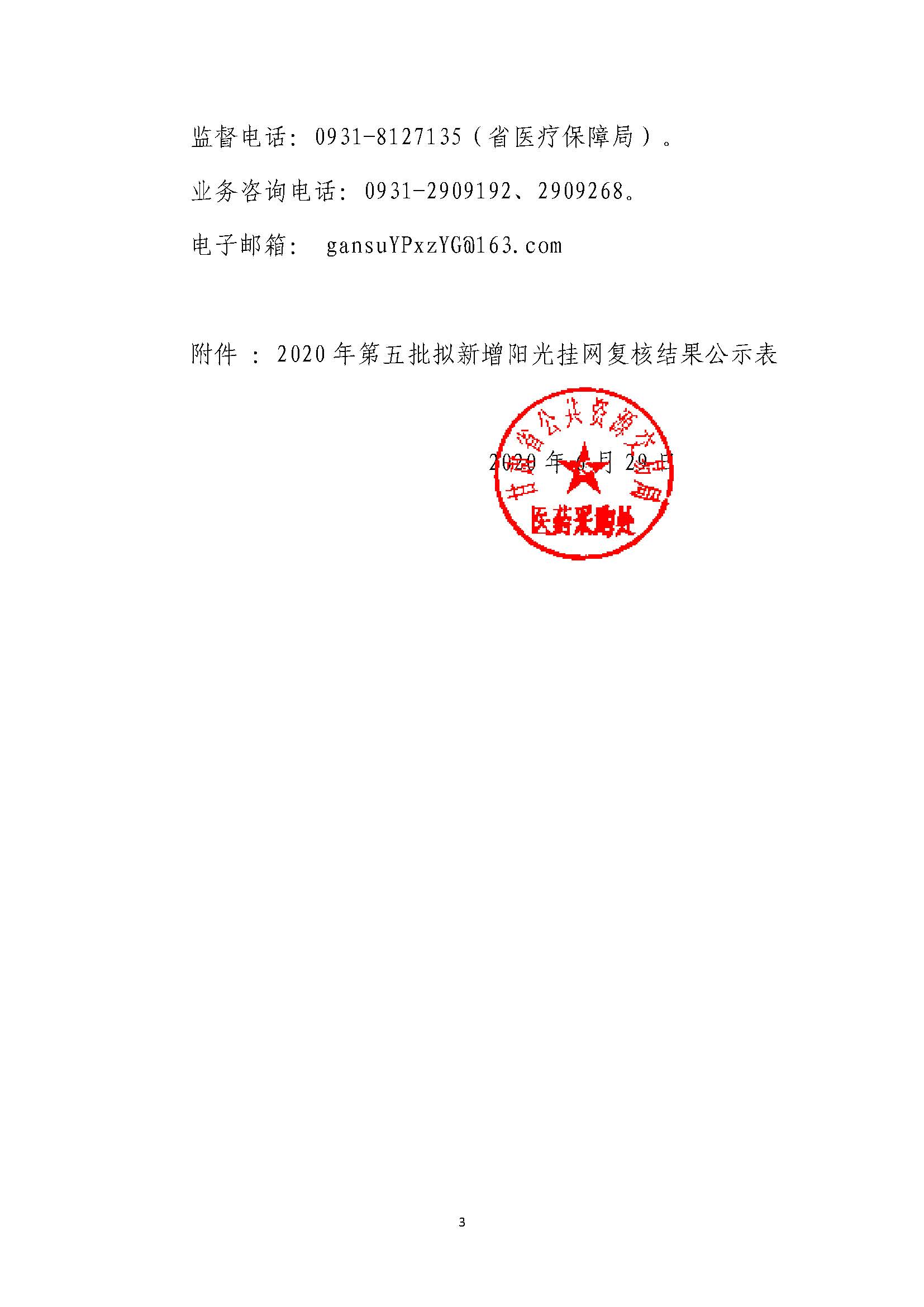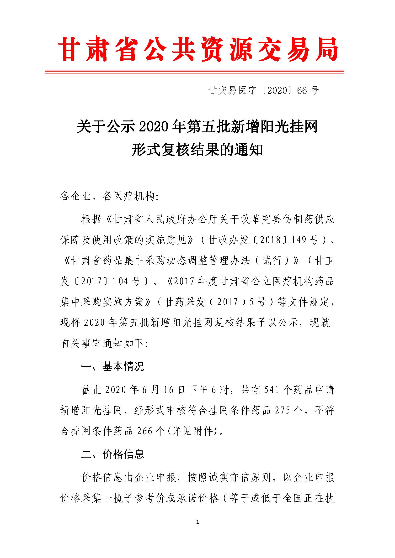 【甘肃】甘肃省关于公示2020年第五批新增阳光挂网形式复核结果的通知
