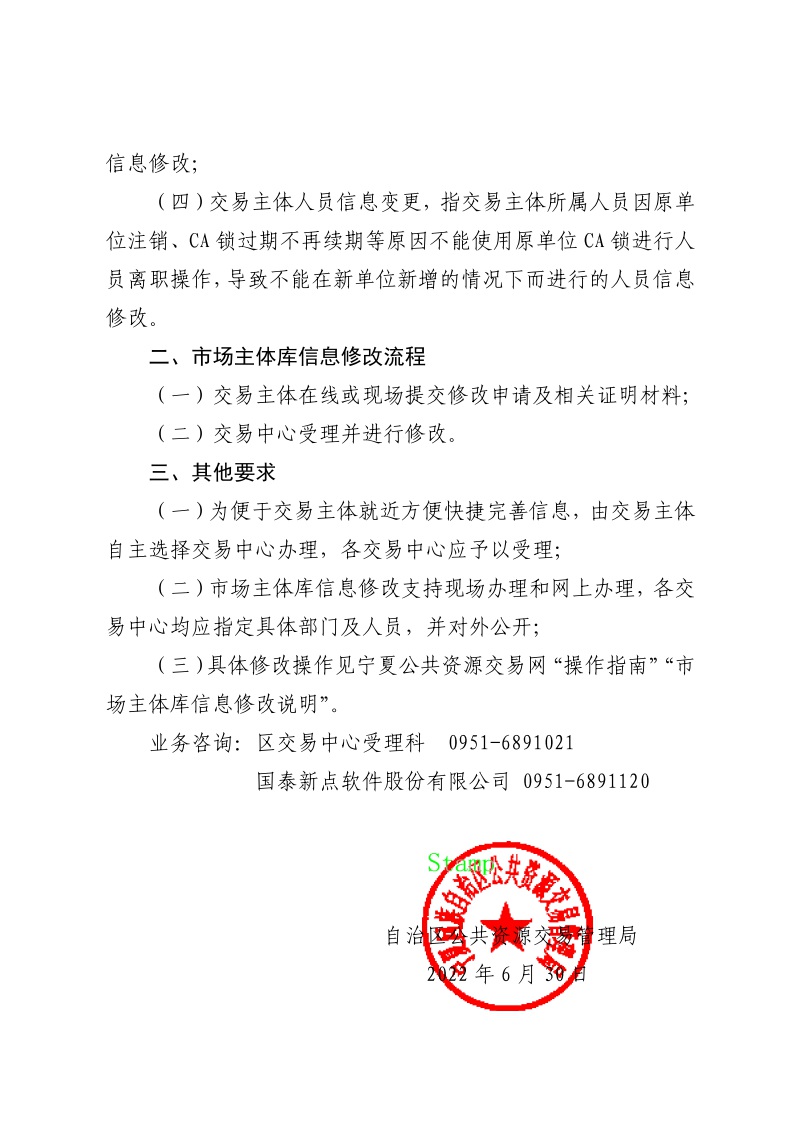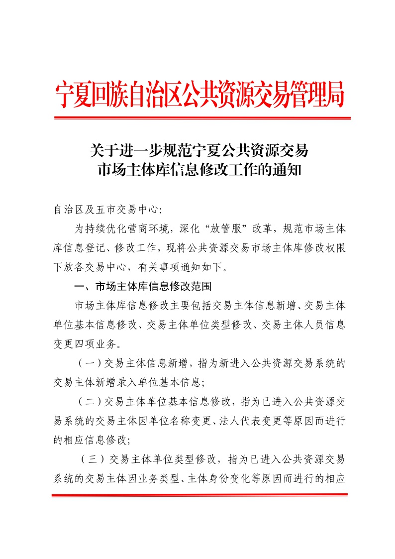 【宁夏】宁夏关于进一步规范宁夏公共资源交易 市场主体库信息修改工作的通知