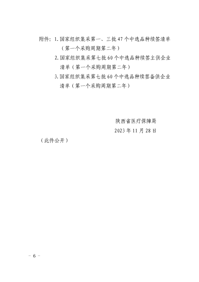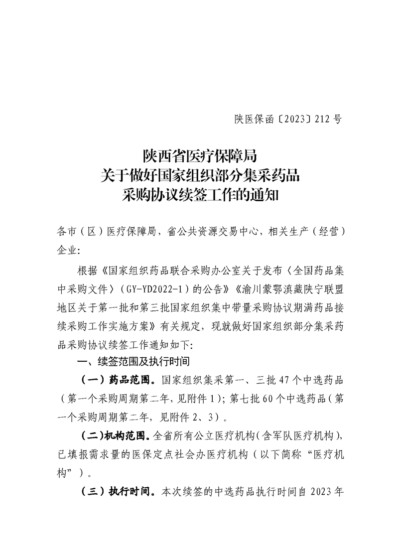 【陕西】陕西省医疗保障局关于做好国家组织部分集采药品采购协议续签工作的通知