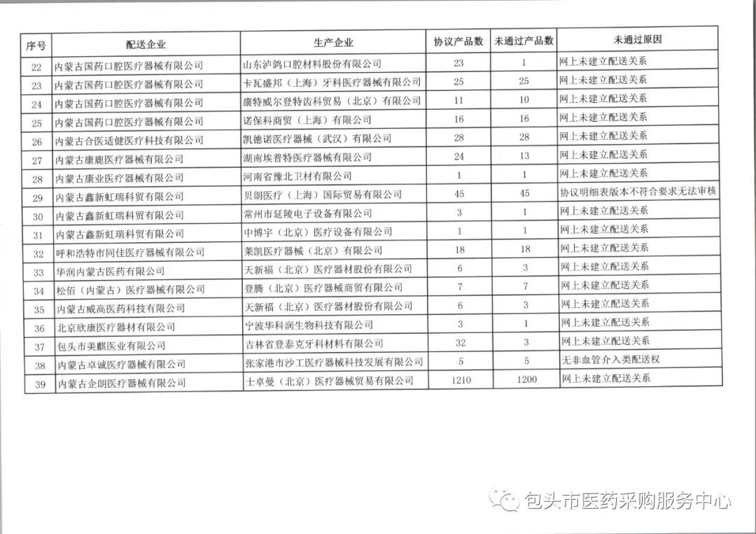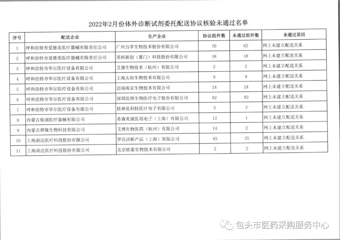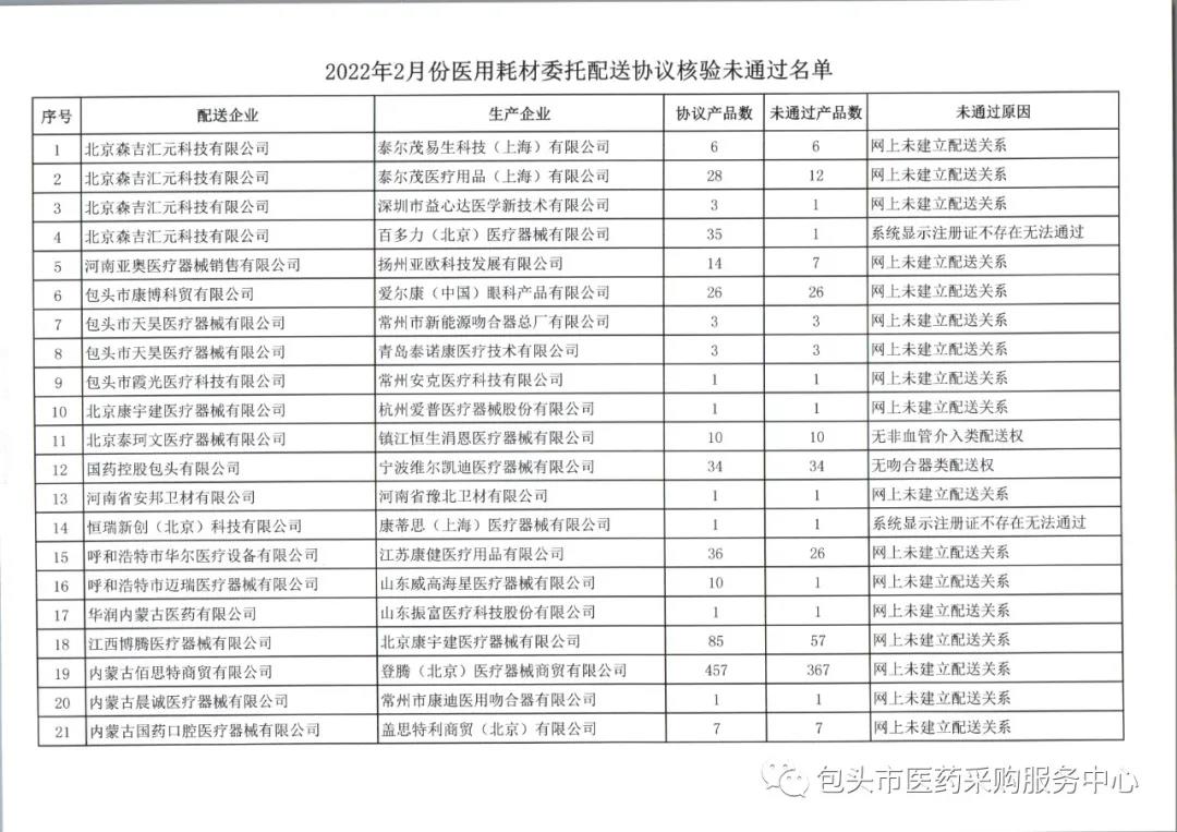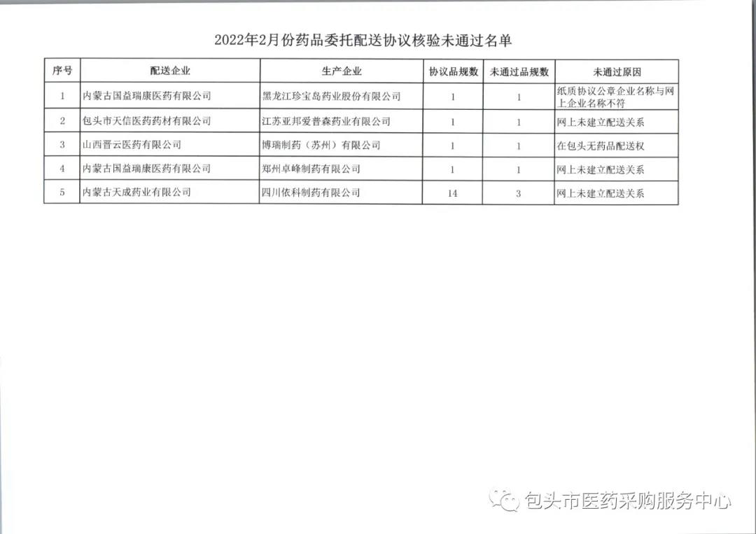 【包头】内蒙古自治区包头市2月份委托配送协议核验未通过名单(20220211)