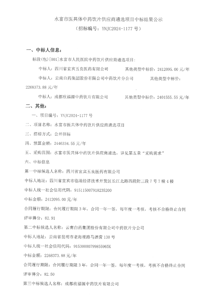 【昭通市水富市人民医院】云南省昭通市水富市医共体中药饮片供应商遴选项目中标结果公示