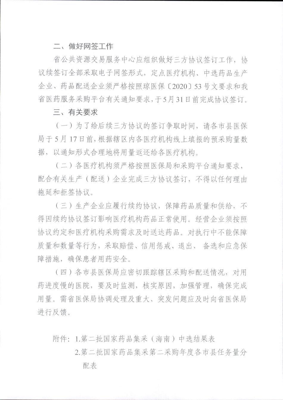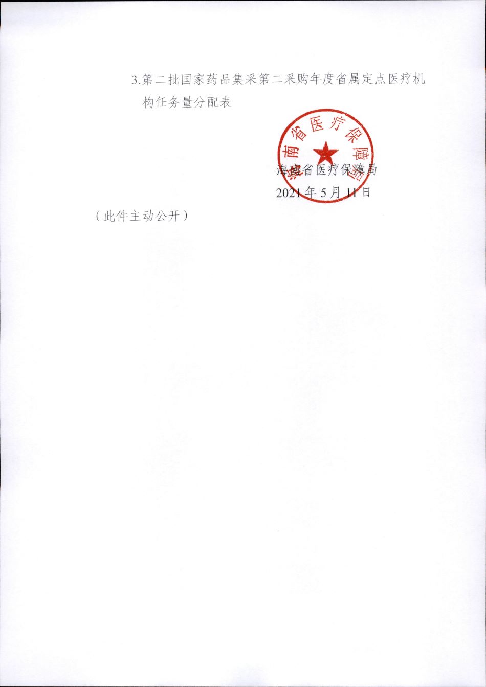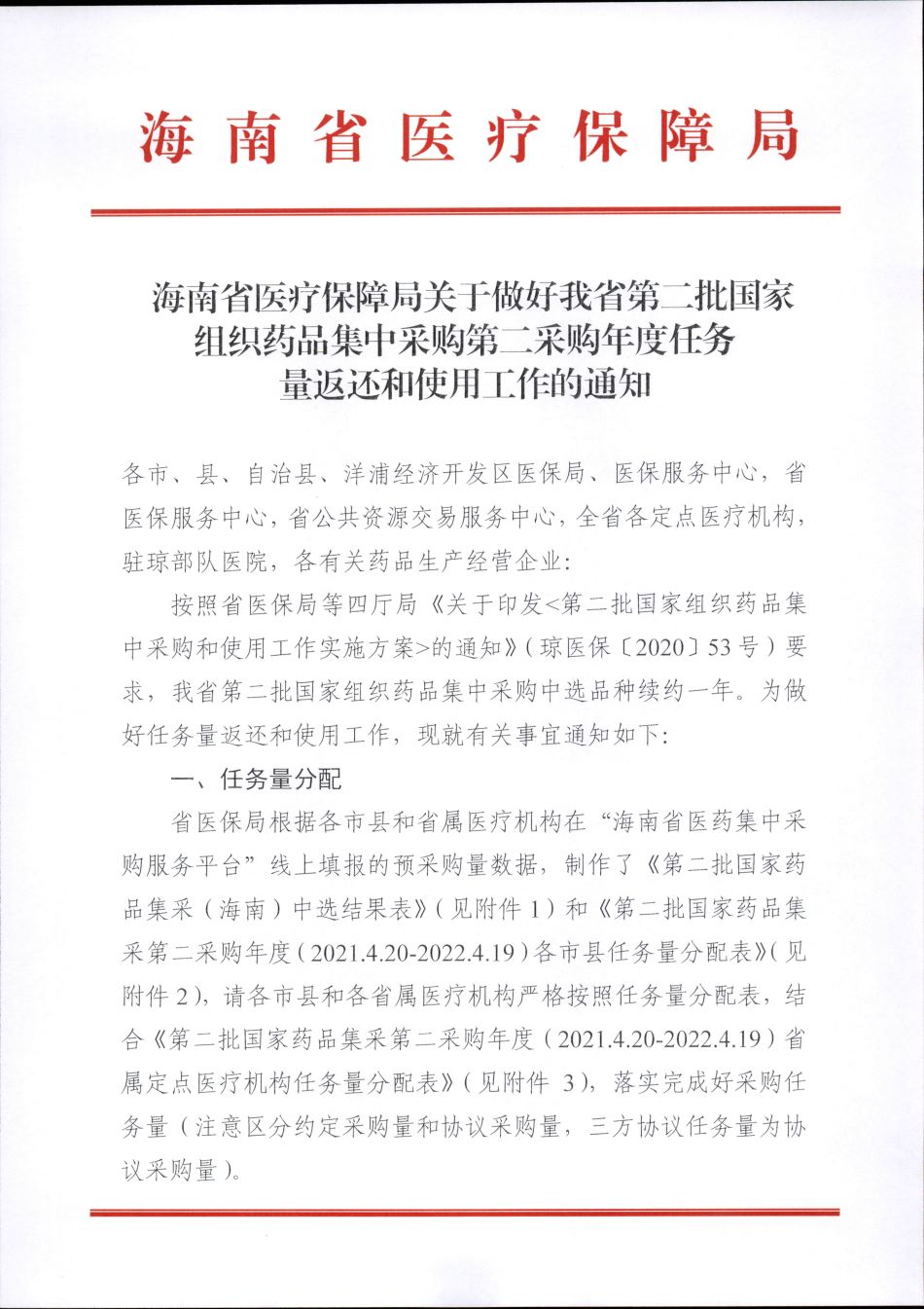 【海南】2021年海南省医疗保障局关于做好我省第二批国家组织药品集中采购第二采购年度任务量返还和使用工作的通知