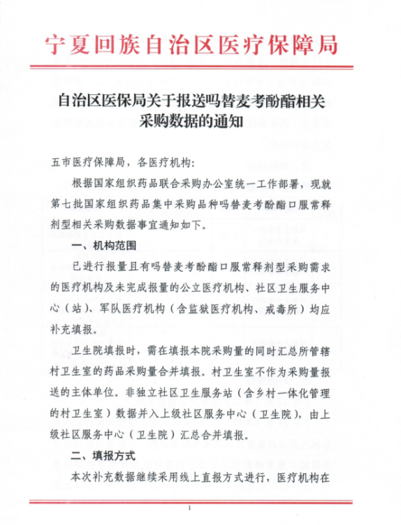 【宁夏】宁夏回族自治区转发《自治区医保局关于报送吗替麦考酚酯相关采购数据的通知》