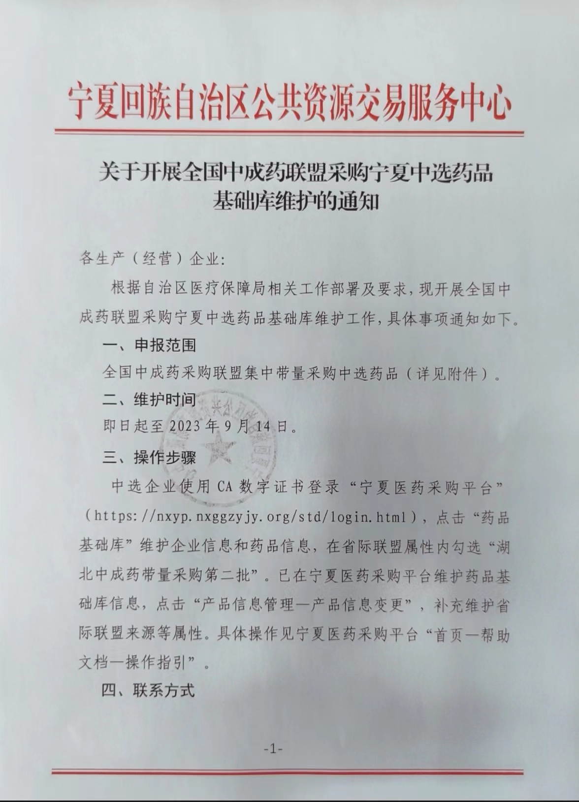 根据自治区医疗保障局相关工作部署及要求,现开展全国中成药联盟采购宁夏中选药品基础库维护工作,具体事项通知如下。