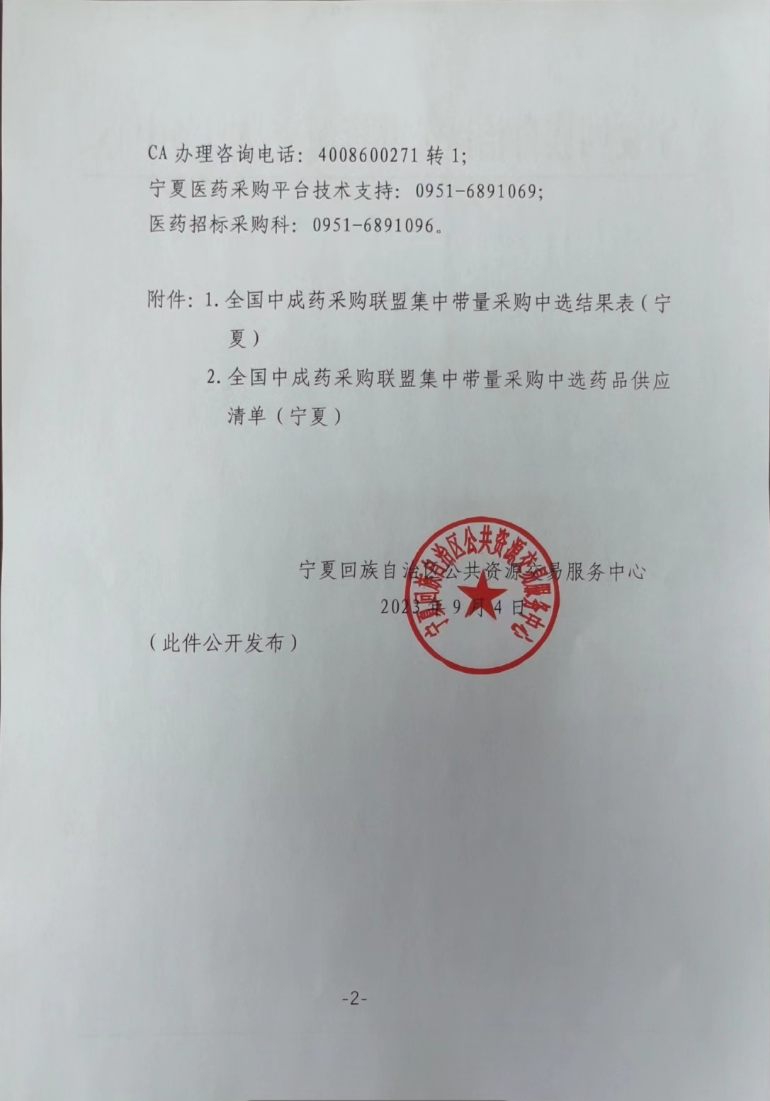 全国中成药采购联盟集中带量采购中选药品(详见附件)。
